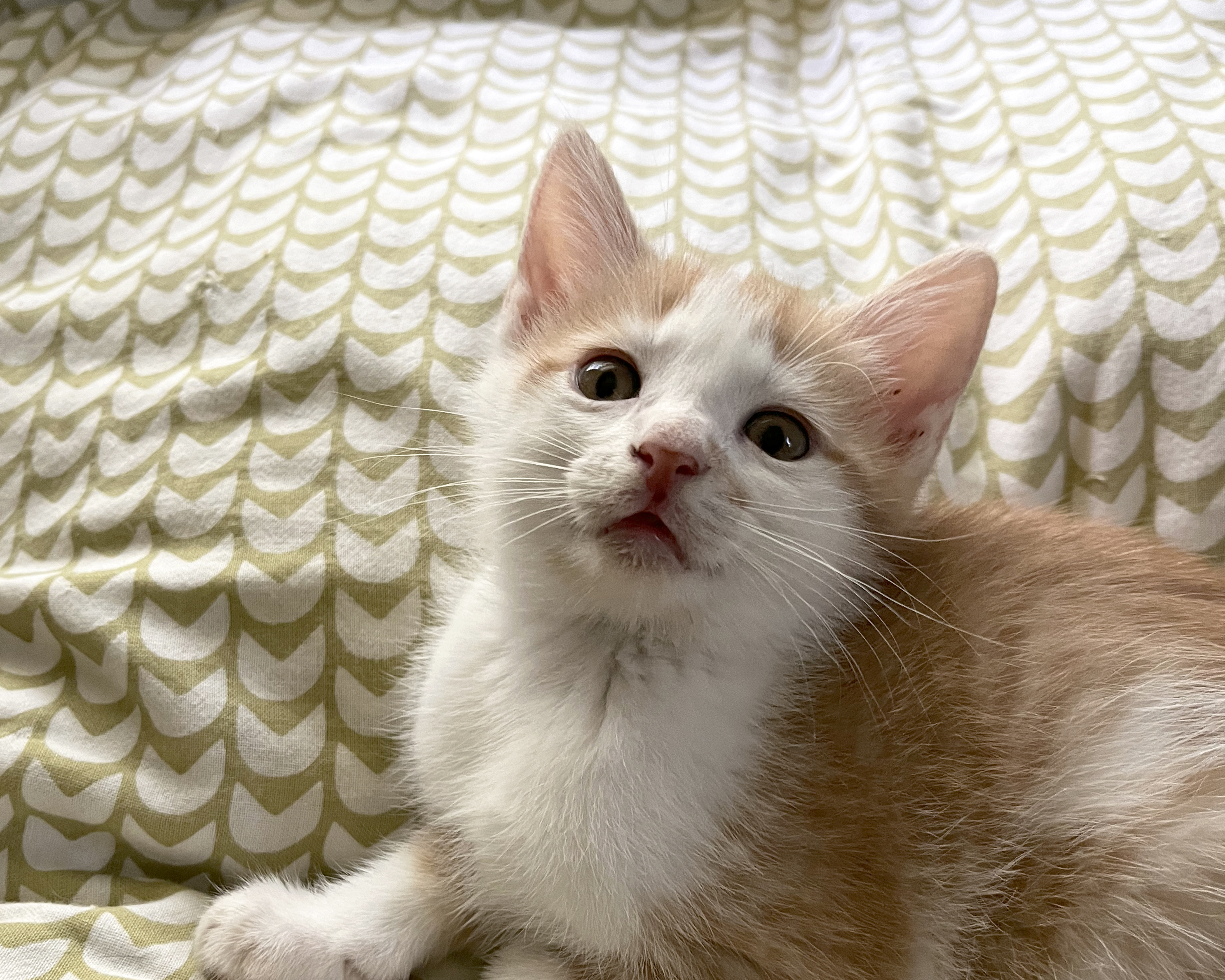 Cornelius is a sweet and gentle boy. He was born May 4 and would pair well with one of his siblings, a home with another cat/kitten, or his mom, Lil’ Mama.